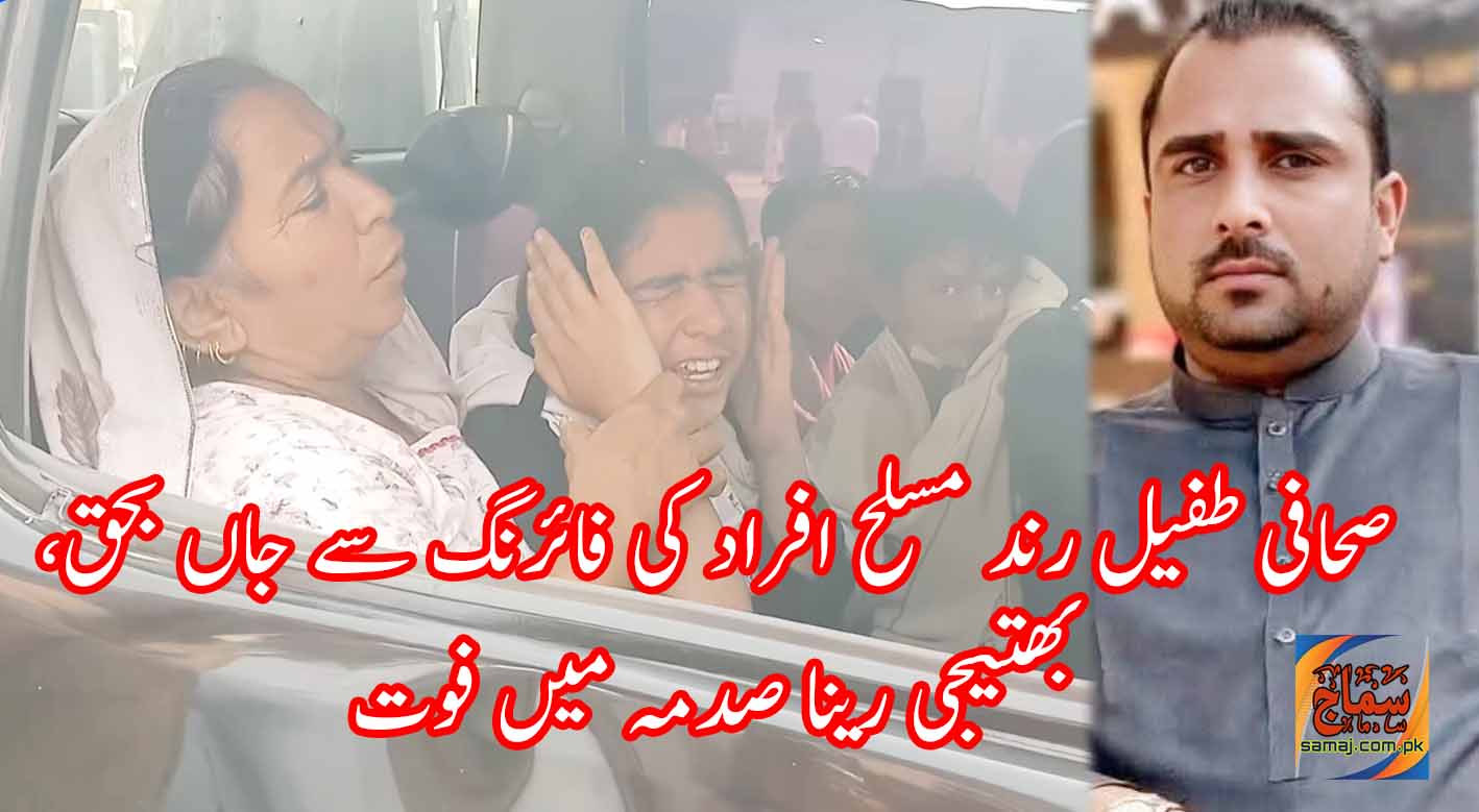 گھوٹکی (نمائندہ خصوصی): میرپور ماتھیلو کے علاقے جروار روڈ، مسو واہ کے قریب آج صبح نامعلوم مسلح افراد نے فائرنگ کر کے مقامی صحافی طفیل رند کو قتل کر دیا۔ افسوسناک طور پر، چاچا کو فائرنگ میں جاں بحق ہوتا دیکھ کر طفیل رند کی معصوم بھتیجی رینا شدید صدمے سے جاں بحق ہو گئی۔