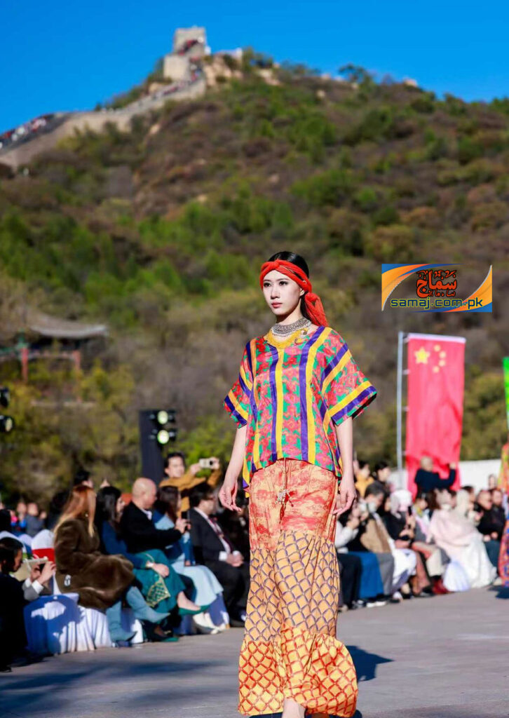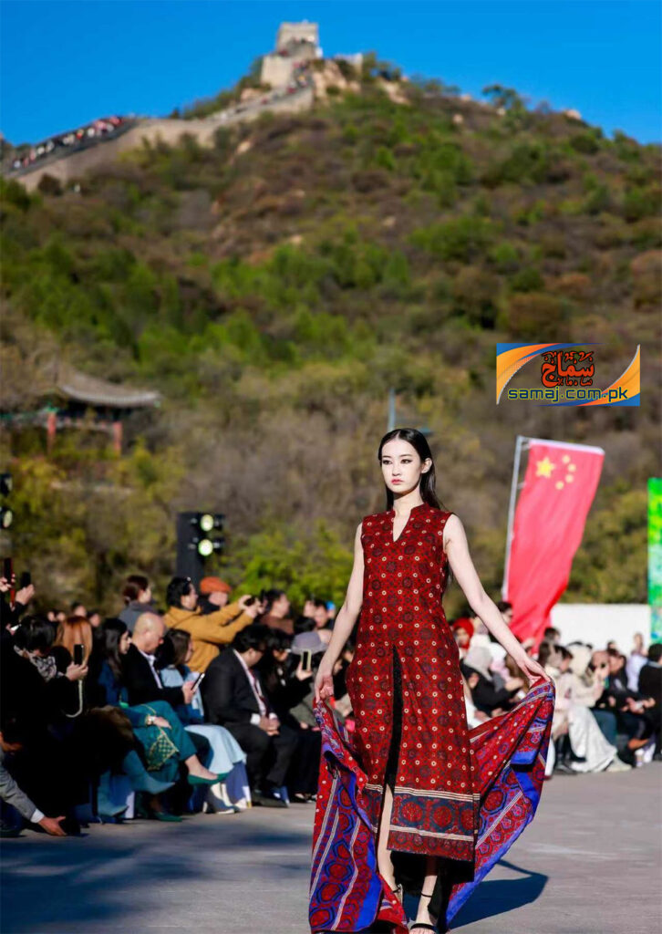 تقریب کی سب سے نمایاں جھلک سندھ کی اجرک رہی۔ پاکستانی ماڈلز نے جب اجرک سے مزین لباس پہن کر دیوارِ چین کے پتھریلے راستوں پر جلوہ گر ہوئیں تو منظر دیکھنے والوں کو محو کر گیا۔